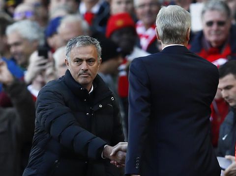 Pertandingan antara Manchester United lawan Arsenal di Old Trafford, Sabtu (19/11/2016), ikut dibumbui panasnya persaingan manajer kedua kubu--Mourinho di MU dan Wenger di Arsenal. Pada satu waktu Mourinho dan Wenger bahkan pernah tidak pakai acara salam-salaman.